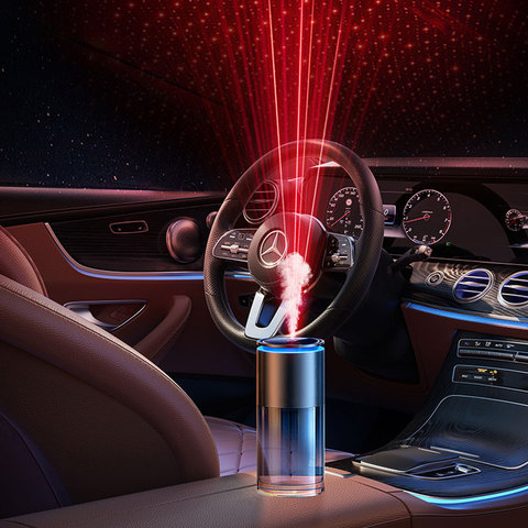 เครื่องกระจายน้ำหอมปรับอากาศแบบพกพาสุดหรูมี7ไฟหลากสีให้แสงสว่างสำหรับรถยนต์ระบบอัจฉริยะไม่มีน้ำ